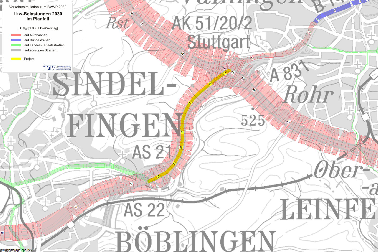| Abb. 2: Kfz-Querschnittsbelastungen des DTVw im Bezugsfall 2030 |