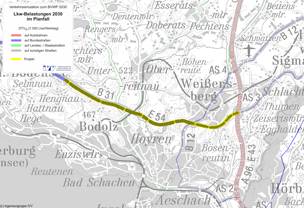 Die B31 ist zwischen der A96 (AS Sigmarszell) und Friedrichshafen eine mit rund 20.000 Kfz/24h (SV 13%) hochbelastete Bundesfernstraße der Verbindungsfunktionsstufe I (Verbindung der Oberzentren Friedrichshafen und Bregenz (Österreich). Die Leistungsfähigkeit des vorhandenen zweistreifigen Querschnitts ist mittlerweile erreicht (Qualitätsstufe E nach HBS 2009). Aufgrund der sehr hohen Verkehrsbelastung besteht ein starker Überholdruck, der wiederholt zu Überholunfällen führt (insgesamt 2 Unfallhäufungsstrecken im Projektbereich). Ein bestandsorientierter Ausbau entsprechend der EKL1 (RAL) ist aufgrund der örtlichen Verhältnisse (etliche Bauwerke und ein Tunnel) nicht geeignet, die verkehrlichen Defizite nachhaltig zu verbessern. Ein leistungsfähiger und verkehrssicherer Ausbau ist deshalb nur durch einen zweibahnigen/vierstreifigen Ausbau möglich.