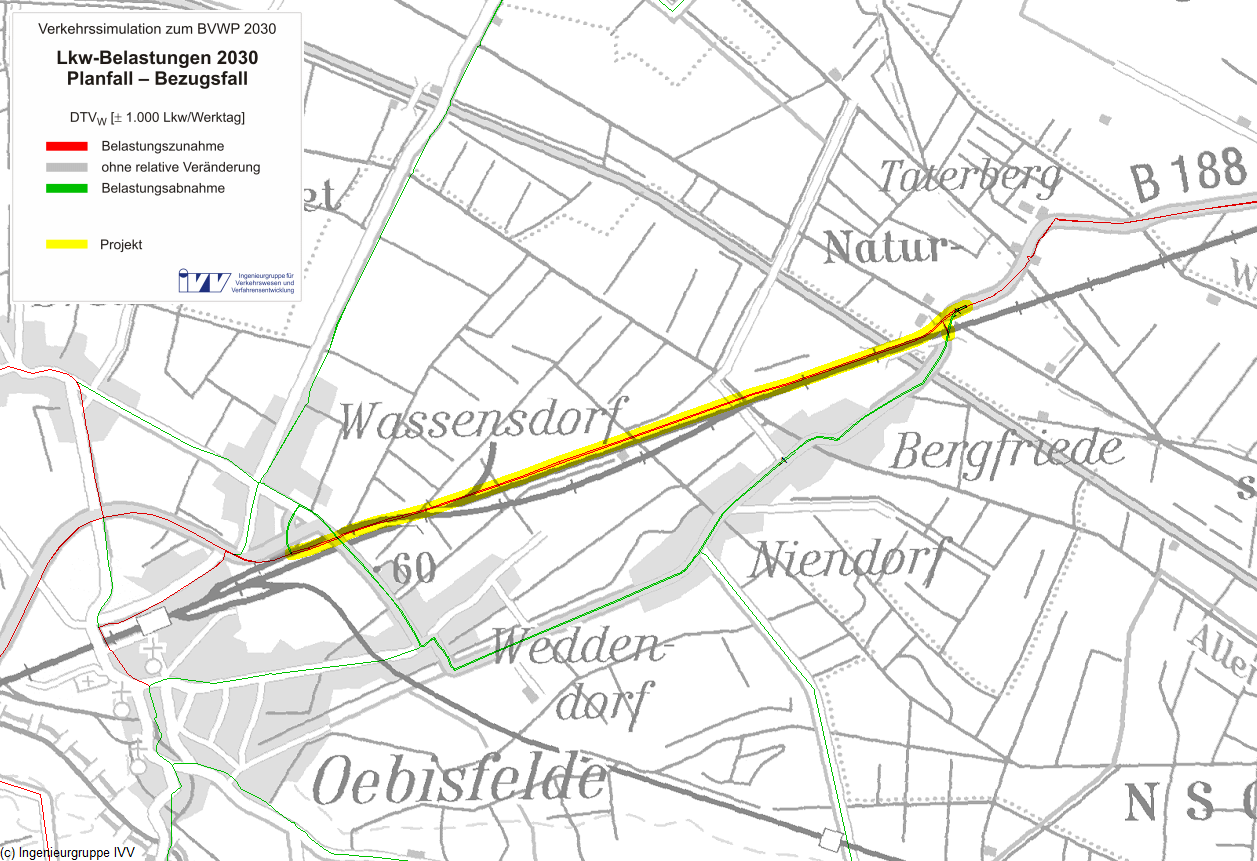 Einstufung in den Vordringlichen Bedarf (VB). Die B 188 verbindet Berlin, Wolfsburg, Braunschweig und Hannover. Zusammen mit dem geplanten Neubau der A 14, A 39 und der B 190n sowie dem Neu- und Ausbau der B 188 wird ein leistungsstarkes Verkehrsnetz geschaffen.