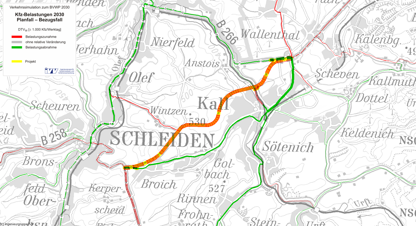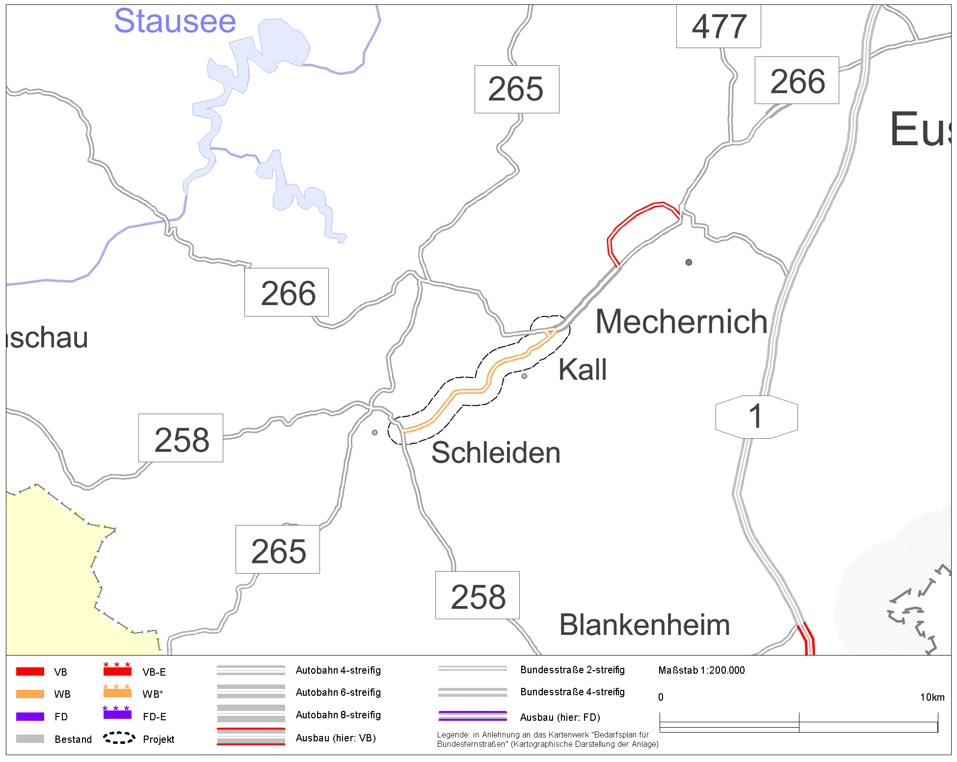 Herstellung einer leistungsfähigen Anbindung des Großraum Schleidener Tal an die BAB1 zur Förderung der wirtschaftlichen und siedlungsräumigen Entwicklung. Umgehungsstraße für Gemünd, Kall, Golbach und Broich.