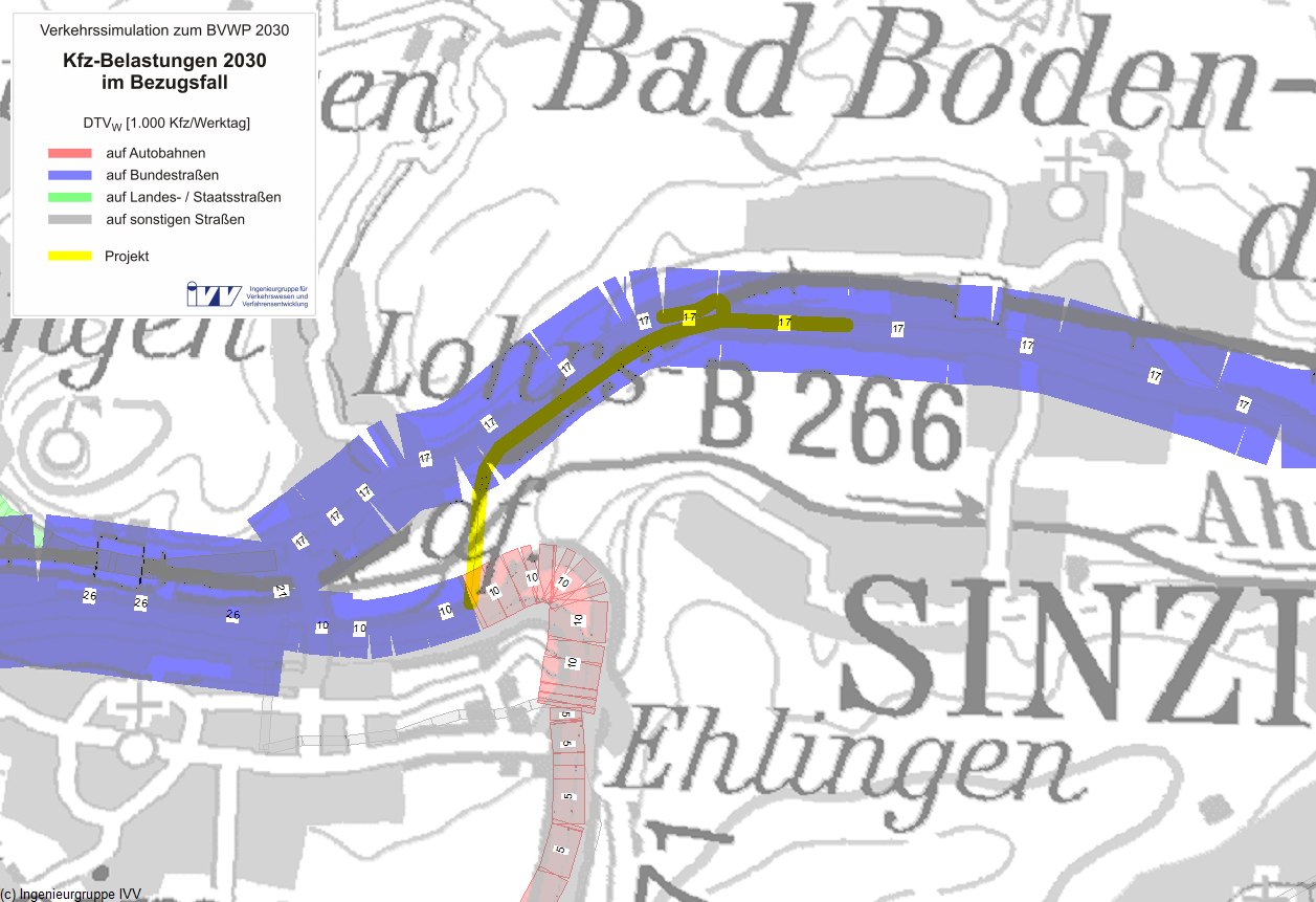| Abb. 2: Kfz-Querschnittsbelastungen des DTVw im Bezugsfall 2030 |