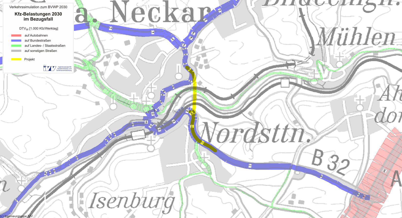 | Abb. 2: Kfz-Querschnittsbelastungen des DTVw im Bezugsfall 2030 |