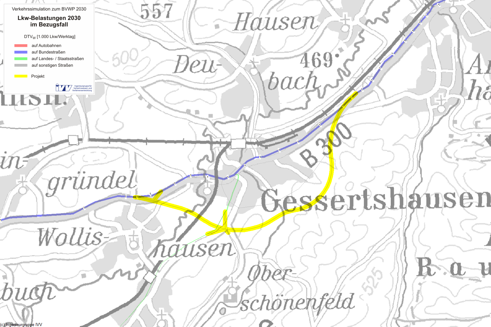 | Abb. 3: Lkw-Querschnittsbelastungen des DTVw im Bezugsfall 2030 |