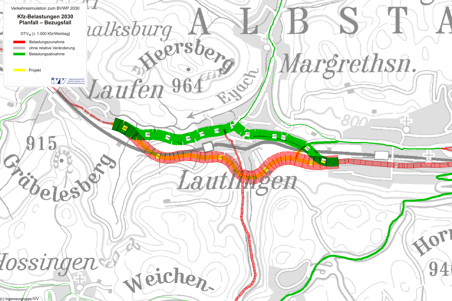 | Abb. 2: Kfz-Querschnittsbelastungen des DTVw im Bezugsfall 2030 |