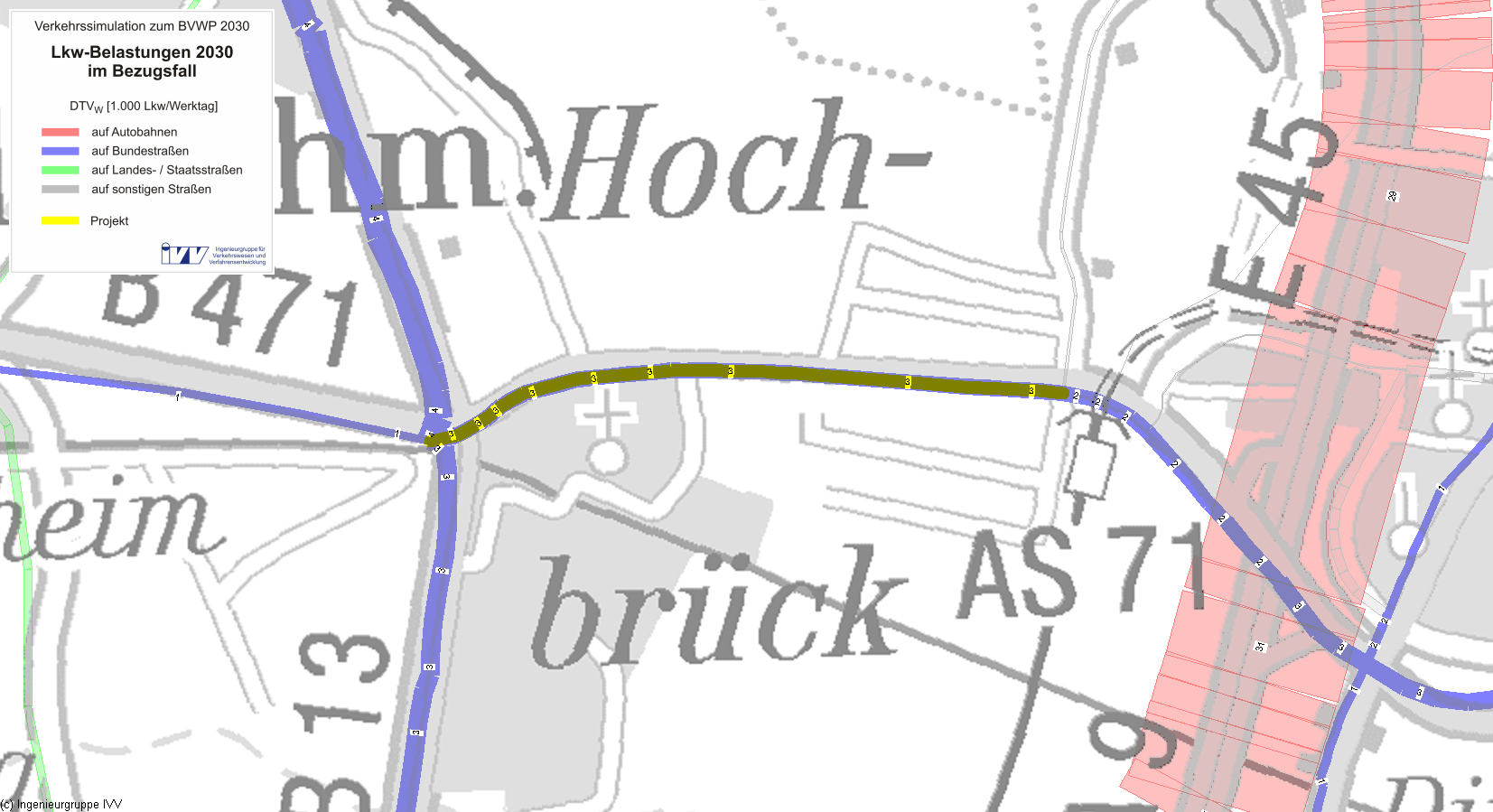 | Abb. 3: Lkw-Querschnittsbelastungen des DTVw im Bezugsfall 2030 |