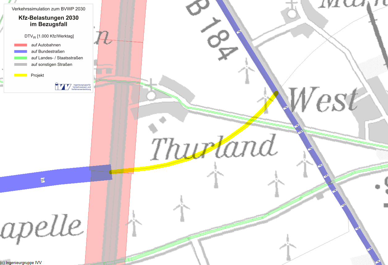 | Abb. 2: Kfz-Querschnittsbelastungen des DTVw im Bezugsfall 2030 |