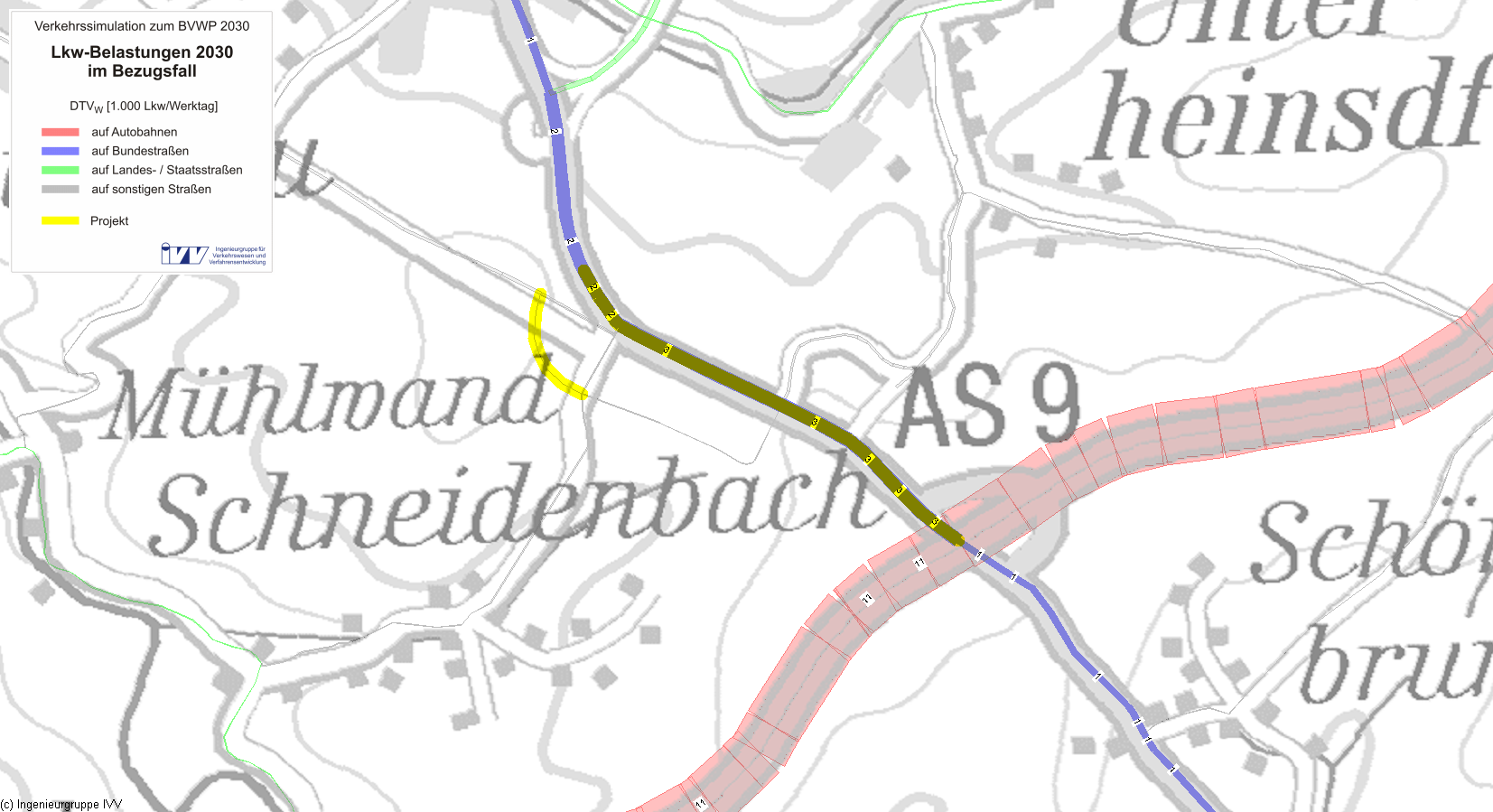 | Abb. 3: Lkw-Querschnittsbelastungen des DTVw im Bezugsfall 2030 |